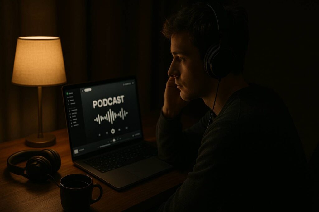 Berdasarkan pengalaman gue, ini bukan podcast buat dengerin pas lagi jogging atau di kendaraan umum yang ramai. Gue sarankan: